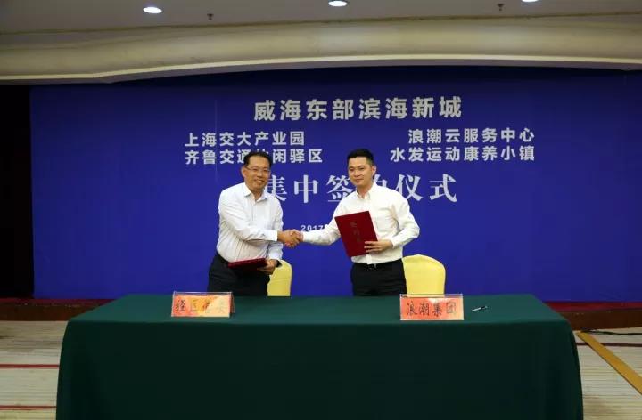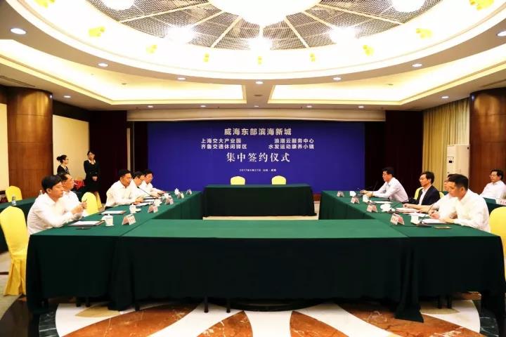 9月27日,東部濱海新城重點項目集中簽約儀式舉行,浪潮“一帶一路”云服務運營中心、上海交大產業園、齊魯交通休閑驛區、水發運動康養小鎮等四個項目集中簽約。威海市委常委、統戰部部長,威海東部濱海新城建設指揮部總指揮戴龍成,威海市政府副市長,東部濱海新城建設指揮部副總指揮周永迪,市商務局局長喬軍出席簽約儀式。